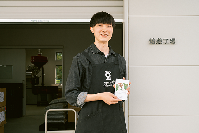 未経験の僕が「コーヒー豆焙煎士」という世界へ飛び込んだのは、「ものづくり」に関わる仕事をしたい、という思いからです。 前職は、大手スーパーマーケットの販売担当。生鮮食料品コーナーで主任として売り場や従業員のみなさんのコントロールをする立場でした。 ある日、大学時代の親友と会い仕事の話になりました。彼は広島のワイナリーでワイン醸造に携わっています。少人数で大変だけど、葡萄栽培から収穫、圧縮やラベル貼り、瓶詰め…と全工程に関わりワインを「生みだしている」彼はとても楽しそうで、キラキラ輝いていたのです。 自分で育てて加工して生みだす「ものづくり」。その手応えに強く惹かれました。 そんな時期に、職場の近くで当社の「焙煎士募集」のフライヤーを目にしました。 「これはものづくりの現場に近づけるかも」と、すぐ決断し飛び込んだのです。 現在は、彼のような「やりがい」にはまだその過程ですが、COFFEEBOYの8店舗の歯車を回す、元の歯車になっているなと感じるようになりました。 実は僕は、大学では生物工学分野で、海洋での赤潮を食べるバクテリアを生成する研究の実験に取り組んでいました。勉強すると、コーヒーも地球規模の背景があることがわかってきました。コーヒーの大きな世界に飛び込んだことも、かつての学びに何かがつながっているような気がしておもしろいと感じています。